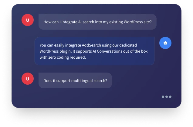 AddSearch leverages advanced AI technology from OpenAI to power all of our AI-driven features. This enables contextually accurate answers across 30 languages, making global search smarter and more effective. As search continues to evolve, we’re committed to delivering tools that truly transform how users find information.