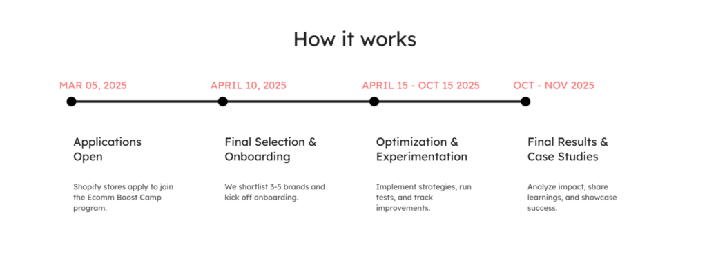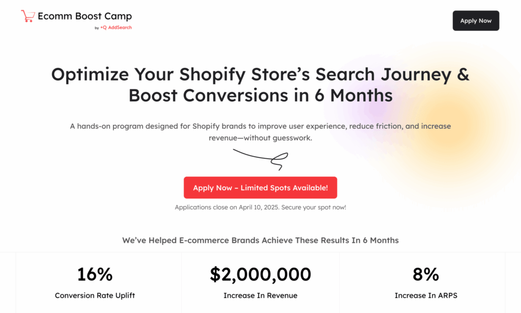 Ecomm Boost Camp is specifically designed for Shopify brands that are serious about improving their store conversions. Not every store will be the right fit, which is why we’re being selective about our participants.