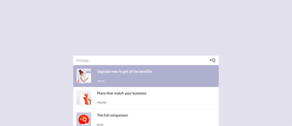 The advantage of Promotions is that it will appear first in the search results regardless of the keyword. You can also associate Promotions to specific keywords. In these cases, Promotions will be shown first when your visitor uses a certain keyword.