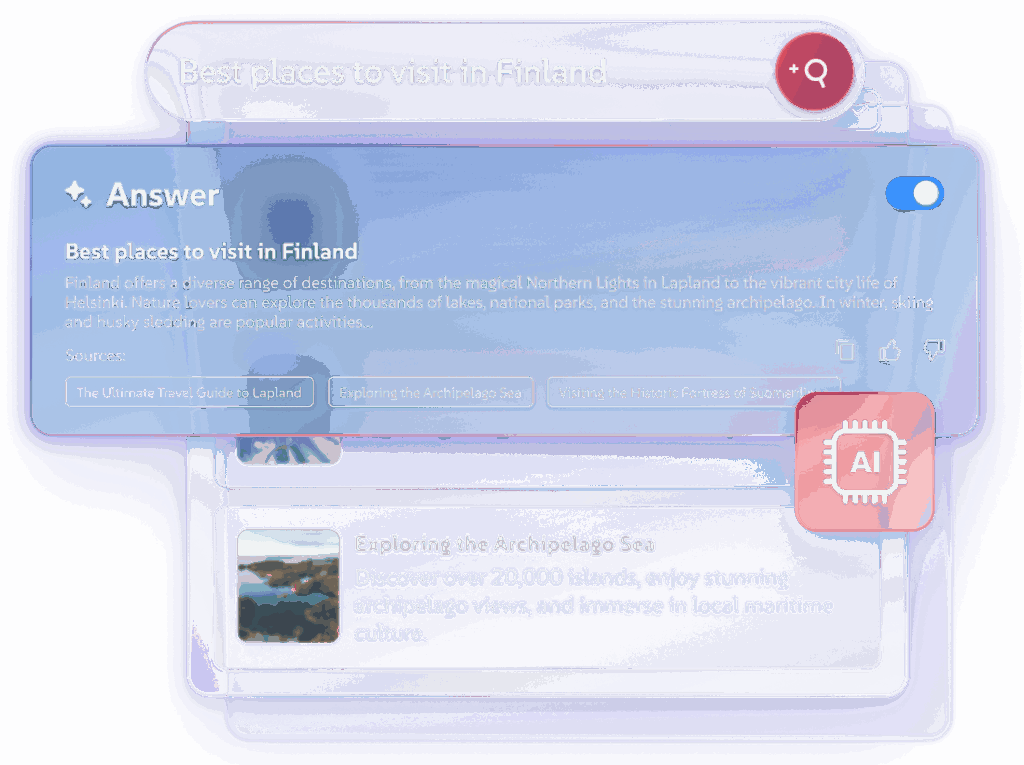 AI-powered site search makes it easier to deliver faster, smarter search experiences. At AddSearch, AI is used to automate systems—reducing the need for manual tuning. Some of these features include Progressive Ranking and Automated Synonyms. However, our new AI Answers solution builds on these technologies to deliver instant answers using existing content.